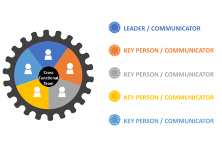 Cross functioning teams are defined as a group of people with different functional expertise working toward a common goal. RDCs, recruits, and support staff teams are comprised of a leader and key people in contributing roles. The cross functional model below displays how we worked as cross functional teams.
