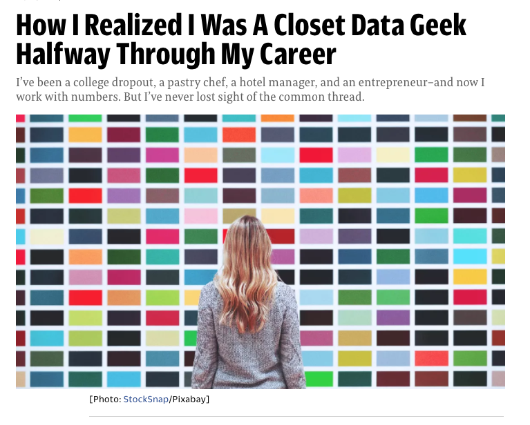 That’s what led me to the world of data. Yes, a former pastry chef who ran a hotel and eco-safari company in Kenya–a speaker, writer, trainer and coach–is officially coming out as a closet data geek. Ta-da!