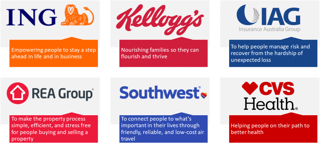 You may wonder what organizations claim for their purpose statements. Here are some examples: