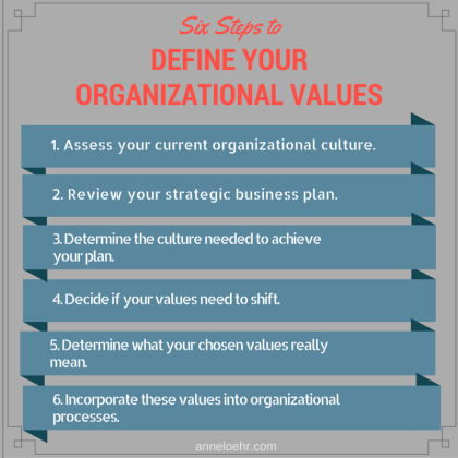 Here, six steps to identifying those organizational values and building a strong company culture: