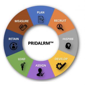 CHCI’s talent life cycle, called PRIDALRM, refers to the interrelated strategies that support the most important assets of an organization – the people. Most of the activities that occur within an organization’s human resources, human capital, and talent management divisions can be distilled to one of the eight components highlighted in the PRIDALRM image.