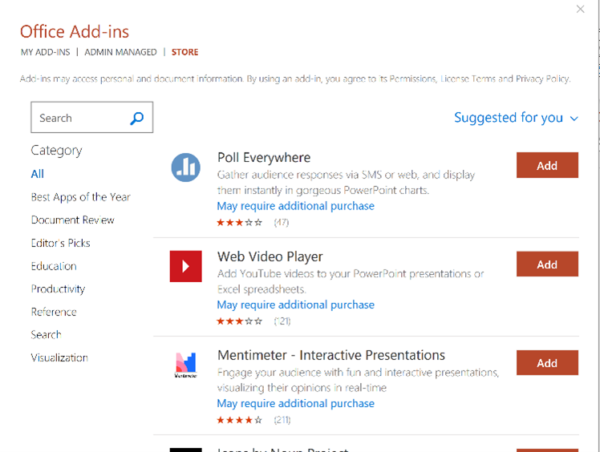 c. Use everything that is at your disposal. One of the extremely underutilized yet hidden gems of Power Point is the Office Add-ins.