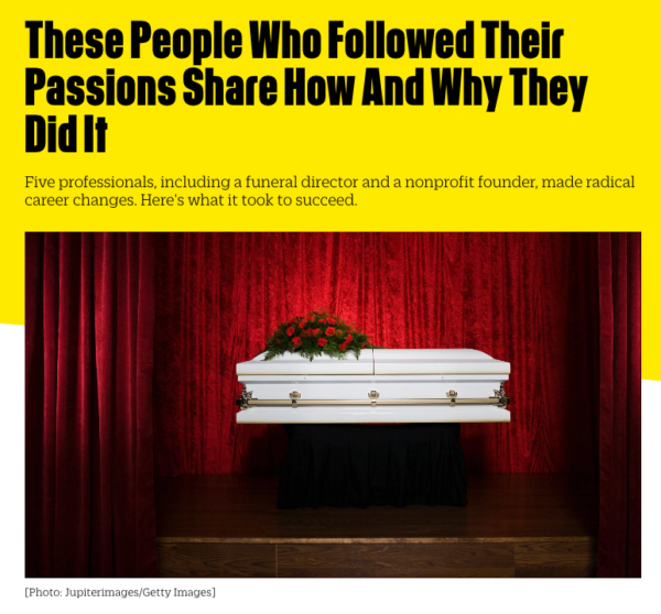 To be sure, those are things pretty much all of us are bound to face in our careers, but it’s far more likely you’ll have a tougher go of it if you’re dead set on following your passion. That’s why so many advise different approaches to finding work, suggest ways to turn your ho-hum gig into your “dream job”, or counsel giving up an a passion career altogether.